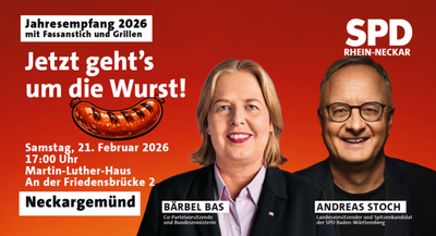 Ein besonderer Höhepunkt des Empfangs ist der Besuch von Bärbel Bas, Bundesvorsitzende der SPD und Bundesministerin für Arbeit und Soziales. Mit ihrer klaren Haltung für soziale Gerechtigkeit und demokratischen Zusammenhalt setzt sie ein starkes Signal für diesen Wahlkampf. Ergänzt wird dieser Impuls durch unseren Landesvorsitzenden und Spitzenkandidaten Andreas Stoch, der den Blick auf die Landtagswahl 2026 richtet und die politischen Herausforderungen und Chancen für Baden-Württemberg einordnet.